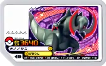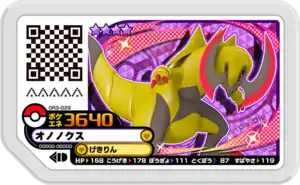 Haxorus (Japanese: オノノクス Ononokus) is a Grade 4 Pokémon Ga-Olé disk. It is part of the third Grand Rush set.