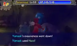In Red Rescue Team, Blue Rescue Team, Explorers of Time, Darkness and Sky, Haze is a move with 13 PP that ignores accuracy and evasion checks. The user targets every Pokémon in the room and removes Attack, Defense, Special Attack, Special Defense, evasion and accuracy stat changes, including stat multipliers from Charm, Aurora Beam, Memento and Screech. This move is affected by Taunt.