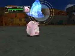 Chansey's body glows blue-green, then blue-green waves come off her body, healing the target. | ||