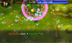 | Chimecho releases blue sound waves from its body, healing everyone around it. | |||
