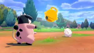 Miltank closes her eyes, puts her hand on where the target is hurt and shakes her tail. The orb at the end of her tail glows blue, makes a ringing noise, and her hand and the Pokémon glow blue, healing the injury, or Miltank shakes her tail and does a dance, making all of her targets calm. | ||