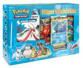 Released during the month of September 2010 was the Player's Collection, a box that repackaged older material in order to make room for newer merchandise. The Player's Collection Boxes contained one Theme Deck from either the Diamond & Pearl Series or the Platinum Series, and 3 booster packs originating from any expansions as far back as the EX Series. Two varieties were released: one featuring an exclusive Cracked Ice Holofoil print of the Gyarados from the HeartGold & SoulSilver expansion, and one featuring an exclusive Cracked Ice Holofoil print of the Magmortar from the Unleashed expansion.