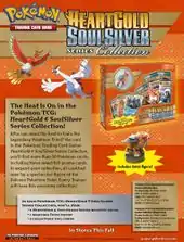 Released shortly after the HeartGold & SoulSilver expansion, on February 24, 2010 was the HeartGold & SoulSilver Poster Pack. Each Poster Pack includes 2 booster packs from the HeartGold & SoulSilver expansion and 2 POP Series 9 packs, as well as a double sided poster featuring promotional artwork from the expansion and a card list. The Poster Packs came in 2 varieties: one featuring Lugia and one featuring Ho-Oh, each as a Cosmos Holofoil promotional card