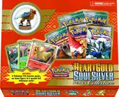 The HeartGold & SoulSilver Series Collection is a promotional box released on the same day as the Triumphant expansion designed to tie up the end of the HeartGold & SoulSilver Series of the Pokémon Trading Card Game. Contained within the Collection are five booster packs, one from each of the HeartGold & SoulSilver expansions with a second Triumphant pack, an exclusive figure of the Volcano Pokémon Entei, and exclusive Cracked Ice Holofoil prints of the Meganium, Typhlosion, and Feraligatr from the HeartGold & SoulSilver expansion.