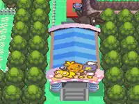 In Platinum, the road paving was given an update so it is now all beige. The tree's sprites were changed to match those in Platinum's Eterna Forest. In addition, the appearance of the entrances to Amity Square was modified so that the arch features a Psyduck, a Torchic and a Drifloon, and a Pikachu on its back.