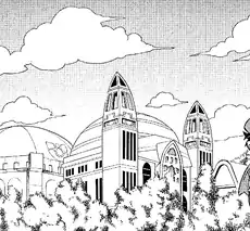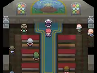 The Foreign Building (Japanese: いぶんかのたてもの Foreign Culture Building) is a building located in the western side of Hearthome City. It has six benches and stained glass windows. All the people there talk about the grace of life in the Pokémon world, supernatural powers, and the balance of spirit and nature. It seems to be loosely based on a church or cathedral, and is the first building in all the Pokémon games to be so. Respectfully, no music can be heard in the building. In the morning, one can see a piece of the wall jutting out behind the stone tablets on either side of the inside.