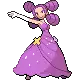 | Mismagius is Fantina's strongest Pokémon and main battler. Mismagius was first seen watching Fantina's Drifblim throw the two women in the trash after they attempted to sabotage Platinum's Contest challenge. She was used to battle Platinum in her Gym battle and she fought the Munchlax she borrowed from Diamond, using her powers to create powerful illusions before eventually being defeated by his Fling. She was later used to battle Saturn's Pokémon on the Spear Pillar and later fought Cyrus in order to destroy the first Red Chain.