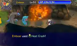 Heat Crash (Japanese: ヒートスタンプ Heat Stamp) is a damage-dealing Fire-type move introduced in Generation V. Prior to Generation VIII, it was the signature move of Tepig's evolutionary line. It is TR88 in Generation VIII.