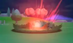 | Pignite jumps into the air and becomes surrounded by a sphere of yellow-orange flames. Pignite then shoots at the opponent and crashes down on them. | |||