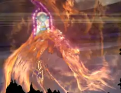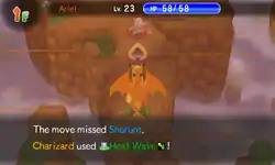 | Mega Charizard Y flaps its wings, creating an orange gust of superheated air that is sent towards the opponent. | |||