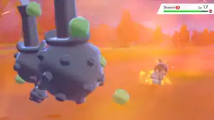 Raboot stands on one of its hands and begins breakdancing. A wave of hot air is then released from its body. | ||