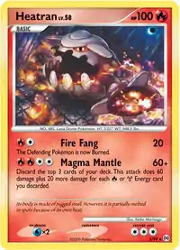 Heatran (Japanese: ヒードラン Heatran) is a Fire-type Basic Pokémon card. It is part of the Arceus expansion.