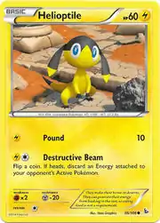 Helioptile (Japanese: エリキテル Erikiteru) is a Lightning-type Basic Pokémon card. It is part of the Flashfire expansion.