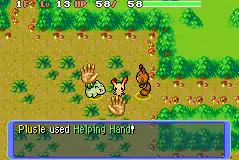 In Red Rescue Team and Blue Rescue Team, Helping Hand is a move with 17PP that ignores accuracy and evasion checks. It targets all team members other than user that are in the same room, raising their Attack and Special Attack by one stage. In hallways, this move targets Pokémon up two tiles away (or one in one-tile darkness). This move is affected by Taunt.