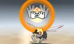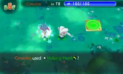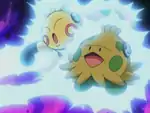 | Minun starts to cheer and its body gives off light blue electric sparks in the process. Then it releases a bolt of blue lightning in the air and it lands on the target, powering it up, or Minun creates a ball of light blue sparks on its hands and it dances and cheers for its ally. When the balls of electricity touch the target, it glows white then multicolored. | |||