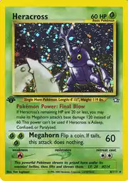 Heracross (Japanese: ヘラクロス Heracros) is a Grass-type Basic Pokémon card. It is part of the Neo Genesis expansion.