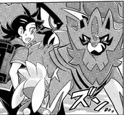 Zamazenta debuted in Sword and Shield, Slumbering Weald!, when Goh encountered it in the Slumbering Weald after getting separated from Ash. After getting no data on Zamazenta from his Rotom Phone, Goh attempted to catch it, only for the Poké Ball to pass through Zamazenta before it disappeared.