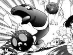 Helping to protect the village was a Bulbasaur, who Melanie said it volunteered to guard it. Although it meant well, Bulbasaur was unintentionally causing all the Pokémon to stay in the village since it was so safe. After saving it from Team Rocket, Melanie asked Ash if he wanted Bulbasaur to come with him. Ash agreed and caught Bulbasaur. The group later left the village.
