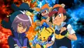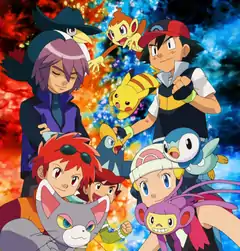 Dawn then slightly pushes Ash. Ash then gives her a thumbs-up as the sun rises. Close ups of Ash, Dawn and Brock and Pikachu and Piplup are seen. They are now seen running across a map of Sinnoh. Ash and Dawn then give each other a high-five. Then, from left to right, Delia, Professor Oak, Max, Tracey, May, Misty, and Gary are seen.