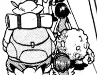 Ash battled a Hiker in Bulbasaur's Mysterious Garden. Bulbasaur was able to defeat the Hiker's Rhyhorn, but took such a heavy hit in the battle that it needed to be rushed to a Pokémon Center afterwards. The same Hiker later made a cameo appearance in The Rivals.