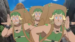 Team Rocket disguised themselves as Hikers in Leave It To Brocko!, while Meowth was disguised as a Shiftry.