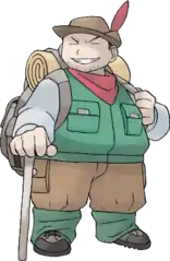 A Hiker (Japanese: やまおとこ Mountaineer) is a type of Pokémon Trainer that debuted in the Generation I games. They appear as large, typically bearded men carrying a walking stick and wearing hiking gear. In the following generations, they also carry a large backpack.