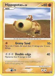 Hippopotas (Japanese: ヒポポタス Hippopotas) is a Fighting-type Basic Pokémon card. It is part of the Majestic Dawn expansion.