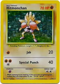 Hitmonchan (Japanese: エビワラー Ebiwalar) is a Fighting-type Basic Pokémon card. It was first released as part of the Base Set.