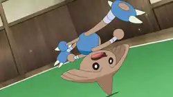 The Hitmons are also the signature Pokémon of the Invincible Pokémon Brothers with each of them having a different one. All three of them first appeared in Gotta Catch Ya Later!, where they were used in a battle against Ash and his friends. Kim's Hitmonchan reappeared in Cerulean Blues, where it was used in a battle against Misty's Staryu.