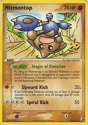 Hitmontop (Japanese: カポエラー Kapoerer) is a Fighting-type Basic Pokémon card. It is part of the EX Unseen Forces expansion.