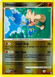 Hitmontop (Japanese: カポエラー Kapoerer) is a Fighting-type Basic Pokémon card. It is part of the Legends Awakened expansion.
