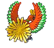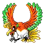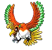 "A Rainbow Pokémon. On sparkling wings of seven colors, Ho-Oh leaves a rainbow behind as it flies. Legend says that Ho-Oh suppressed a war that scorched the land in ancient times. Its attack Sacred Fire can melt ice in an instant and also damage the target with burns. Ho-Oh will show its solemn figure only for the most righteous Trainers."