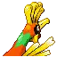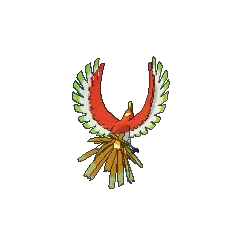 This Pokémon flies through the skies, trailing rainbows from its wings, and is said to promise eternal happiness to all who see it. Supposedly, it appears every once in a while in the Fire-type Elite Four Trainer's room in the Kalos Pokémon League stage. Its screams cause pillars of fire to rise all the way to the ceiling.