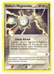 Holon's Magnemite (Japanese: ホロンのコイル Holon's Coil) is a Metal-type Basic Pokémon card. It is part of the EX Delta Species expansion.