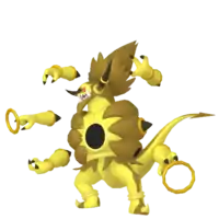 Hoopa Unbound may also have been inspired by djinn, while its six arms may be drawn from the Hindu deities known as Shakti, who were rumored to grow multiple arms. It may also be based on the Gegenees, who were a tribe of six-armed giants who fought the Argonauts in Greek mythology. Its tail and horns may also derive from common depictions of demons.
