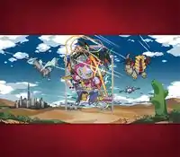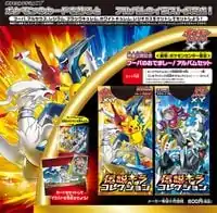 Another special pack available from July 18, 2015 was the Hoopa's Appearance~! Album Set (Japanese: 映画公開記念<劇場・ポケモンセンター限定> 「フーパのおでまし~!アルバムセット」 Movie Commemoration <Theater•Pokémon Center Limited> Hoopa's Appearance~! Album Set), which comes with two Legendary Shine Collection Concept Packs, released on the same day, and an album for displaying up to 12 cards. Two pages in the album feature large illustrations that can be completed by inserting the appropriate cards. The first page contains an illustration by Naoki Saito, which features an arid landscape and Dahara City in the distance, and includes space for the promotional Hoopa card available to movie patrons. The second page contains a landscape illustration by Shin Nagasawa and includes spaces for Regigigas, Arceus, and White Kyurem, all from the Legendary Shine Collection. Although the last two pages contain no large illustration, the display flaps on the third page have the edges of Reshiram and Black Kyurem, which form a collective image by Mitsuhiro Arita.