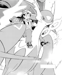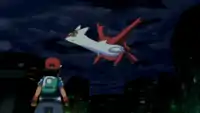 | Hoopa summoned Latias to help fight against its shadow. She carried Ash's Pikachu around, and was shown being able to Mega Evolve.