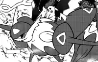 Another Kyogre in its Primal form was the last Pokémon summoned by Hoopa's shadow to battle Ash and Hoopa Confined. None of Kyogre's moves are known, while Primal Kyogre's known moves are Hydro Pump and Origin Pulse. | ||