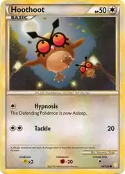 Hoothoot (Japanese: ホーホー Hoho) is a Colorless-type Basic Pokémon card. It is part of the HeartGold & SoulSilver expansion.
