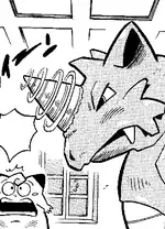 Rhydon's horn spins like a drill and it stabs the opponent with it. | ||