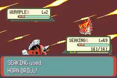 Seaking's horn begins to spin like a drill. Then, it rams its spinning horn into the opponent, sometimes repeatedly. | ||