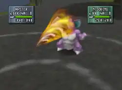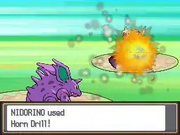 Rhydon's horn spins like a drill and it charges at the opponent. It then stabs the opponent with its horn. Sometimes, the horn glows orange while using the move. | ||
