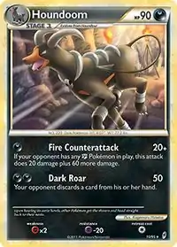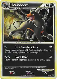 Houndoom (Japanese: ヘルガー Hellgar) is a Darkness-type Stage 1 Pokémon card. It was first released as part of the Undaunted expansion.