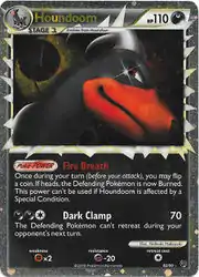 Fire Breath is a Poké-Power first seen on Dark Houndoom from EX Team Rocket Returns. Dark Clamp's Japanese name is that of Jaw Lock, a move later introduced in the Generation VIII Pokémon games that Houndoom cannot learn.