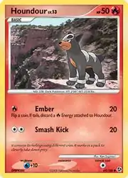 Ember is a move in the Pokémon games that Houndour can learn. This card's Pokédex entry comes from Pokémon Diamond and Pearl.