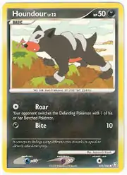 Roar and Bite are both moves in the Pokémon games that Houndour can learn. This card's Pokédex entry comes from Pokémon Diamond and Pearl.
