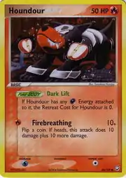 Houndour (Japanese: デルビル Delvil) is a Fire-type Basic Pokémon card. It is part of the EX Team Rocket Returns expansion.