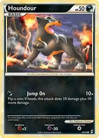 Houndour (Japanese: デルビル Delvil) is a Darkness-type Basic Pokémon card. It was first released as part of the Undaunted expansion.