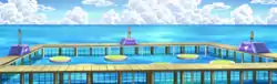 The Humilau Gym appeared in The Road to Humilau!. It is a seaside Gym with a rectangular battling field having two raised platforms on the opposite ends. Cameron challenged Marlon for a Gym battle and won, earning himself the Wave Badge, thus completing his collection of eight Badges required to participate in the Unova League Conference.