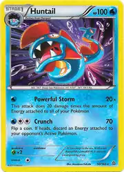 Powerful Storm is an attack that first appeared on Gallade from Plasma Storm. Crunch is a move in the Pokémon games that Huntail can learn. This card's Pokédex entry comes from Pokémon Y.